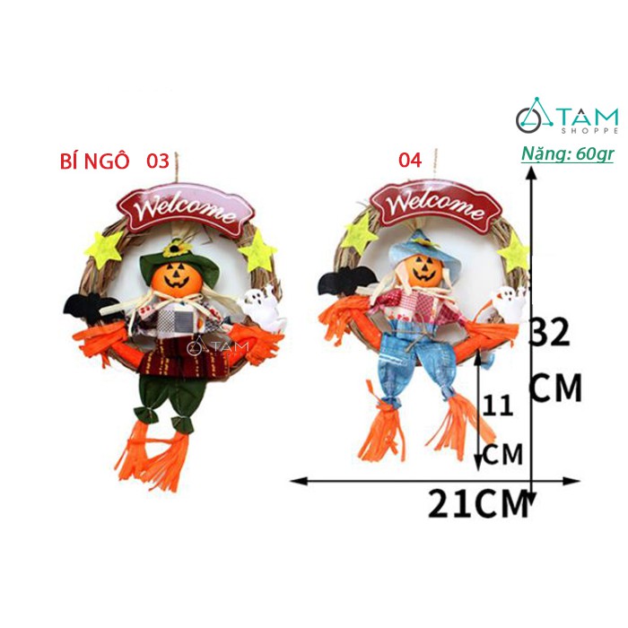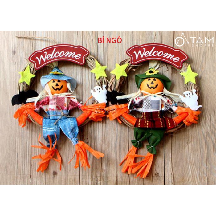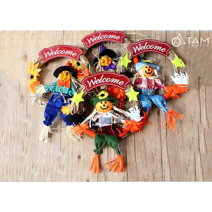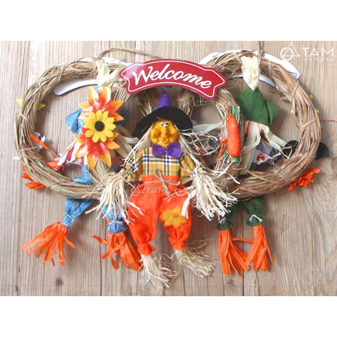 Nhà cửa & Đời sống > Trang trí nhà cửa > Rèm cửa, màn che || Vòng treo cửa Halloween Welcome người rơm HLW-BTC-03Còn hàng