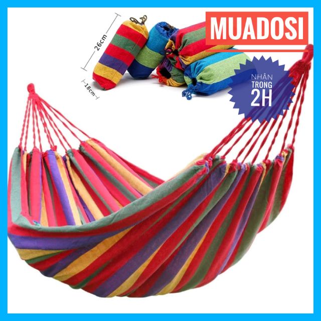 Một trong những hành trang không thể thiếu được mỗi khi đi du lịch đi phượt đó là chiếc võng.Nó giúp bạn có thể nghỉ ngơi an toàn tiện lợi.Ngủ trên võng giúp bạn tránh được ẩm ướt hay rắn dếp cũng như mối nguy hiểm ẩn mình trong rừngVõng du lịch dã ngoại kẻ sọc cao cấp