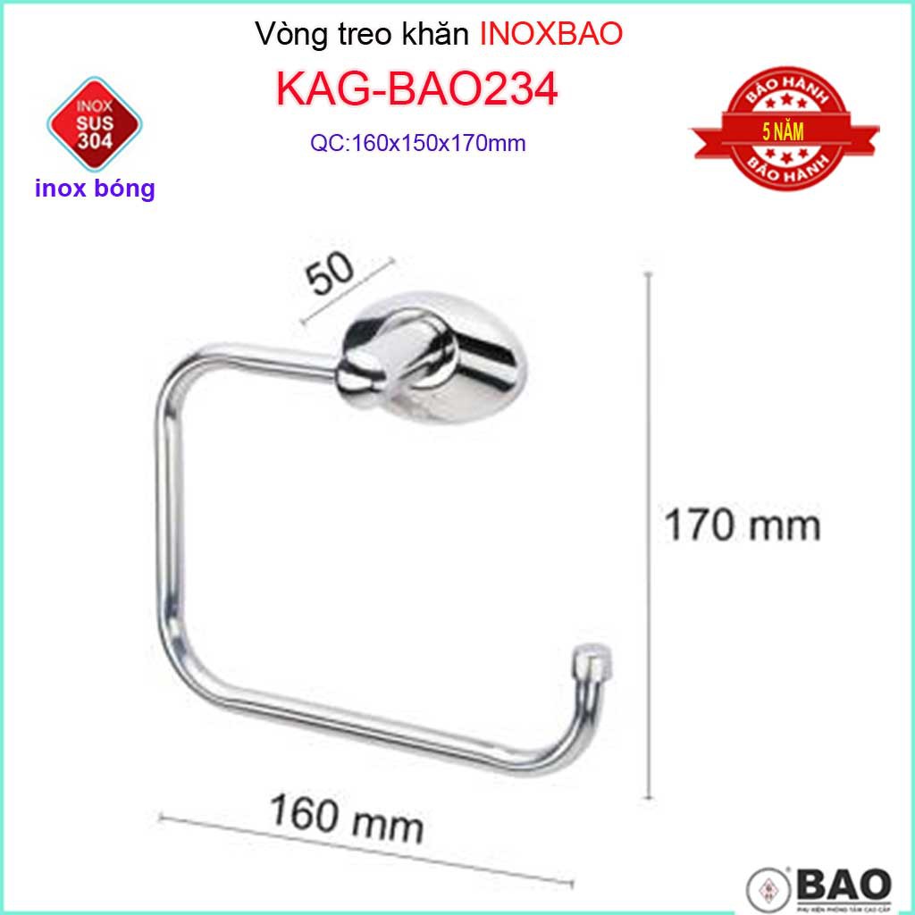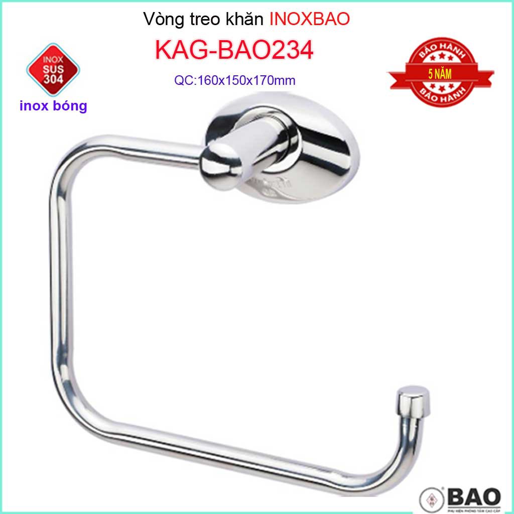 òng treo khăn Inox Bảo,máng khăn vòng Inox 304 KAG-BAO234Kích thước dài 160mm x rộng 170mm