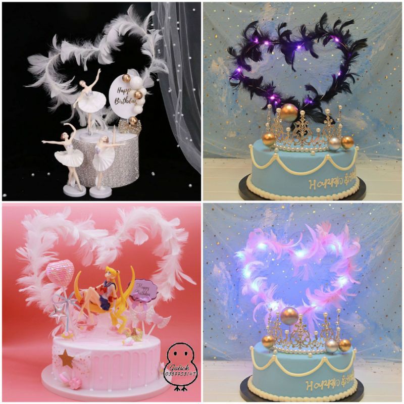 Vòng tròn tim lông vũ trang trí bánh kem.Dùng tạo hình theo ý thích trang trí bánh kem
