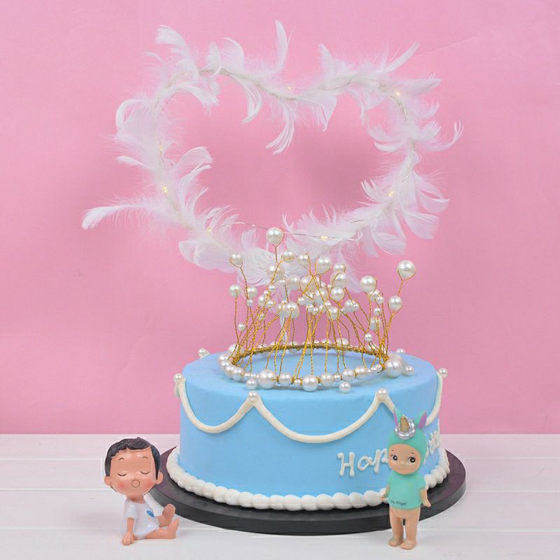 Vòng tròn tim lông vũ trang trí bánh kem