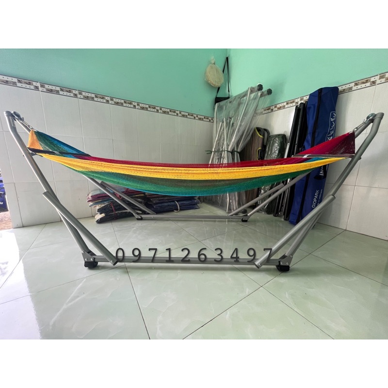 Bộ võng xếp bao gồm khung võng, lưới võng ,túi đựng võng và phiếu bảo hành* Mẫu mã mới rất đẹp mắt phù hợp dùng để trang trí nội thất phòng khách và thuận tiện xếp gọn khi không dùng đến hoặc mang đi du lịch nghỉ mát