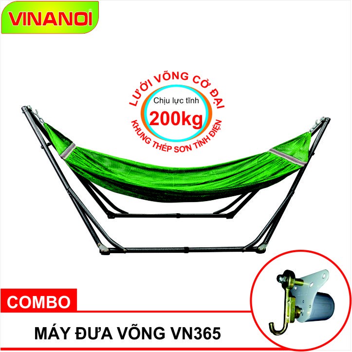 VÕNG XẾP TỰ ĐỘNG CHO BÉ VÀ NGƯỜI LỚN - BAO GỒM KHUNG VÕNG, LƯỚI VÕNG CỠ ĐẠI MÀU XANH LÁ, MÁY ĐƯA VÕNG SỨC ĐƯA 70 KG (VN365-KVT365) - THƯƠNG HIỆU VINANOI - BẢO HÀNH CHÍNH HÃNG 1 NĂM - SẢN XUẤT TẠI VIỆT NAMTHÔNG TIN CHI TIẾT SẢN PHẨM