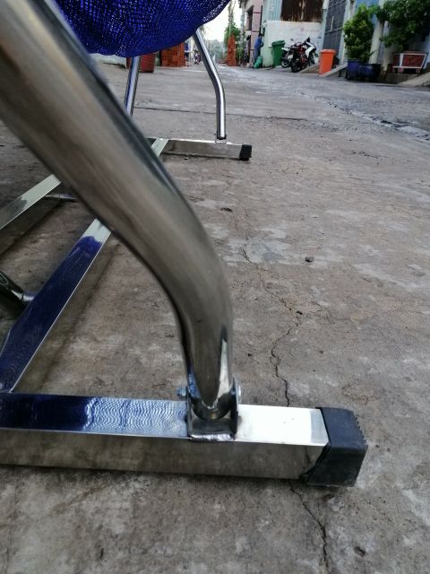 + Chất liệu: INOX 201 sáng bóng. Gồm chân vuông 40 x 40 và cánh võng ống fi 32 dày 1mm
