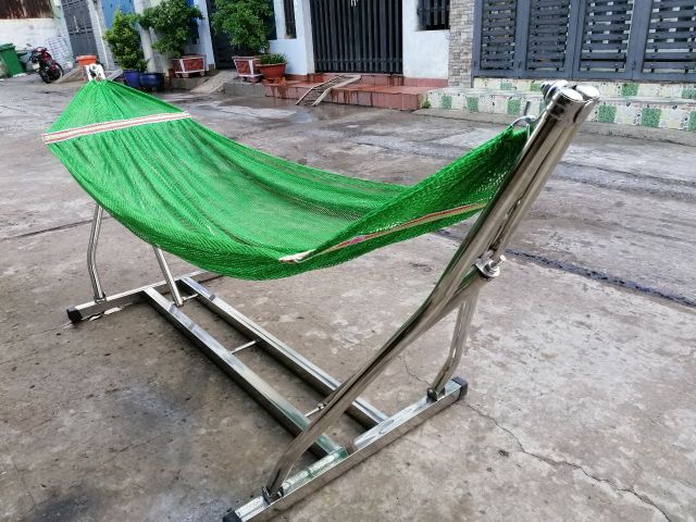 + Bạc đạn inox loại lớn với chất mỡ bôi trơn tốt giúp chiếc võng xếp hoạt động rất êm ái.