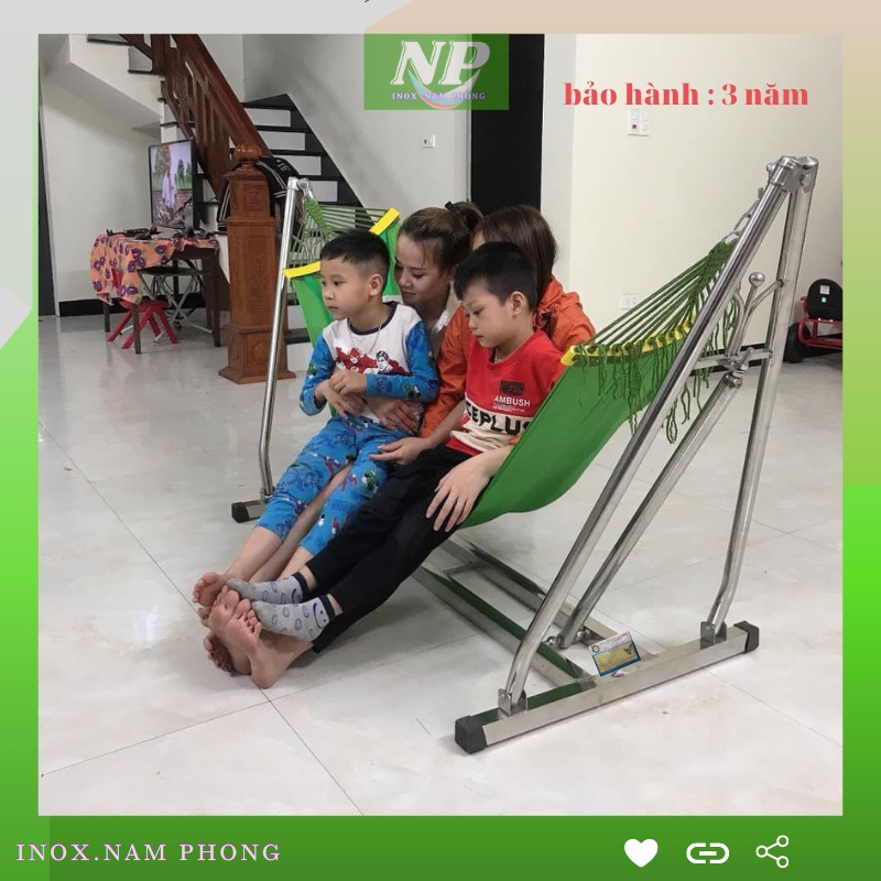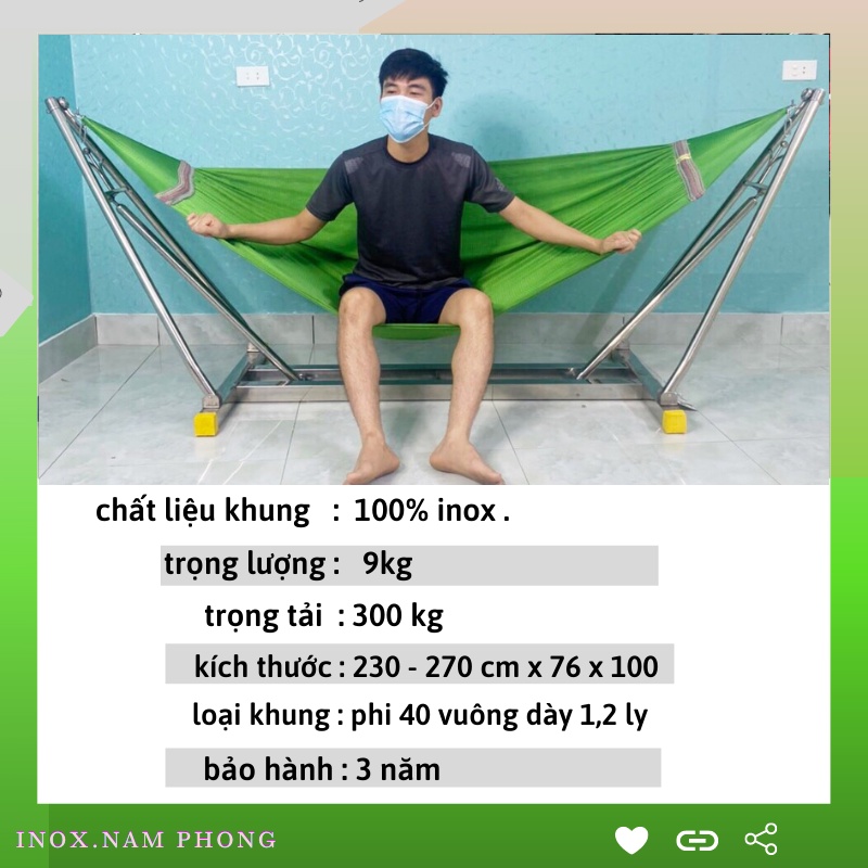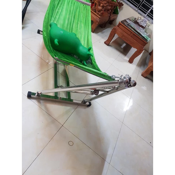 là chiếc võng xếp được hoàn thiện bằng chất liệu inox 100 %, dạng ống lớn Kết hợp với bạc đạn Nhật cho cảm giác hoạt động rất êm và bền bỉ.