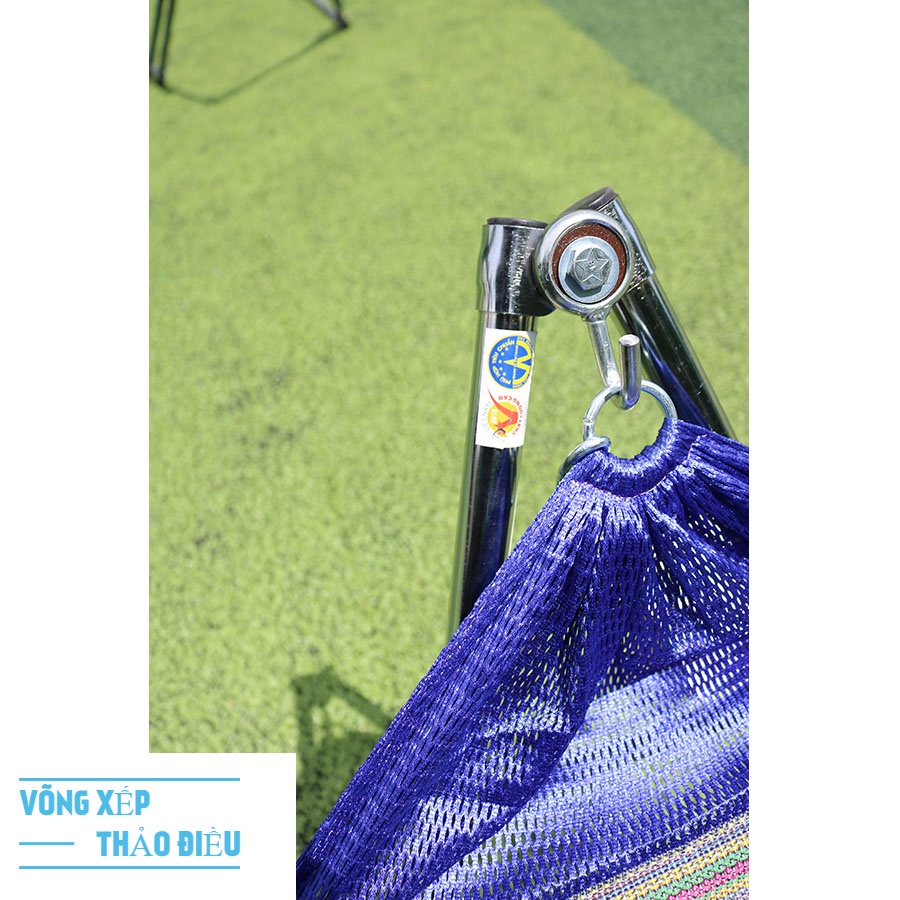 Võng xếp inox xi tay cong xuất khẩu cao cấp kèm lưới võng rộng