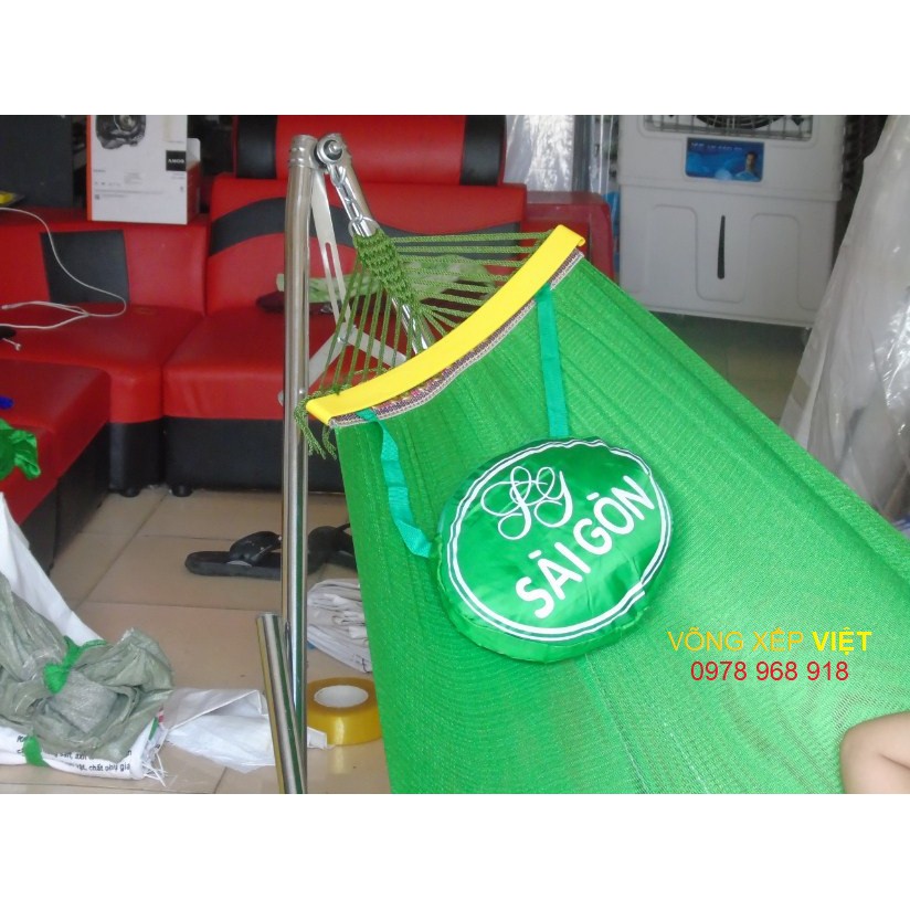 Võng xếp khung inox cỡ lớn phi 32- Tặng lưới cán nhựa