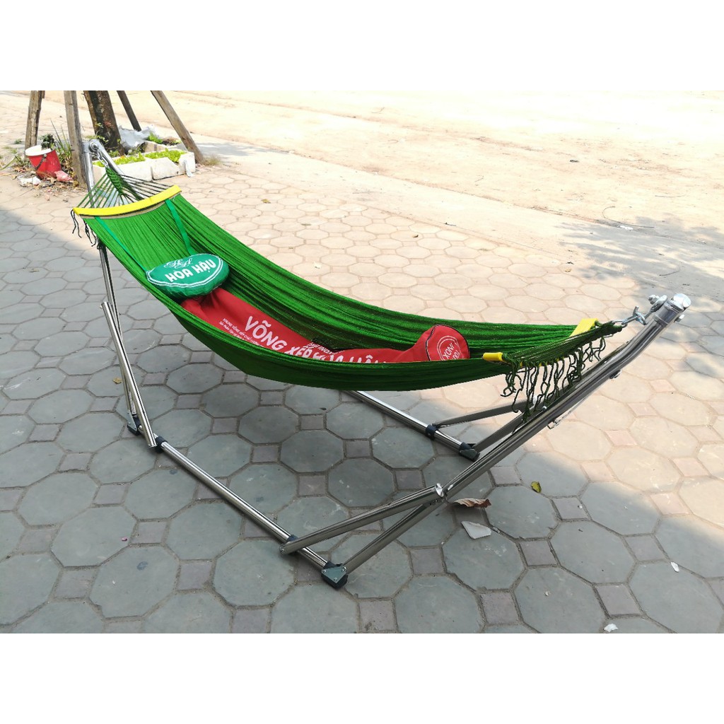 📌Bộ sản phẩm bao gồm ( 1 khung võng INOX cỡ phi 32 và 1 lưới võng loại dày kèm gối đầu)➡Trọng lượng khung võng 8kg