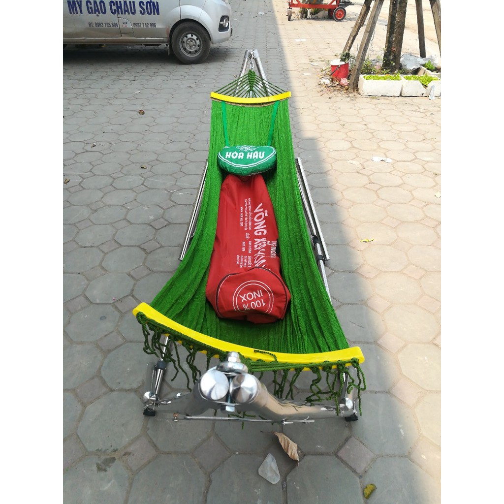 📌Bộ sản phẩm bao gồm ( 1 khung võng INOX cỡ phi 32 và 1 lưới võng loại dày kèm gối đầu)➡Trọng lượng khung võng 7kg