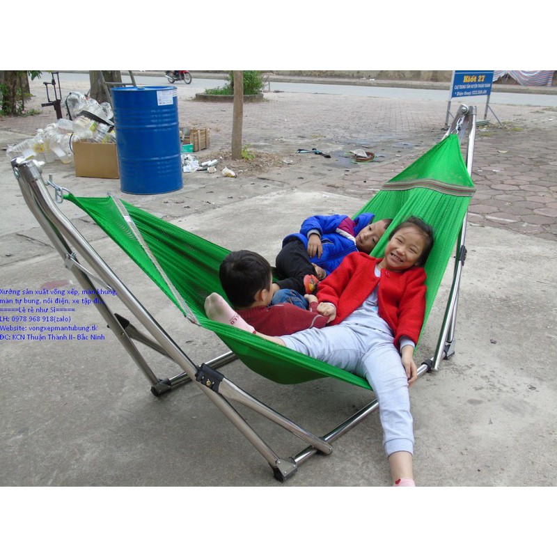 Võng xếp khung inox phi 32 kèm lưới võng cỡ đại
