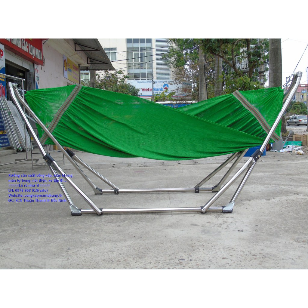 Võng xếp khung inox phi 32 kèm lưới võng cao cấp