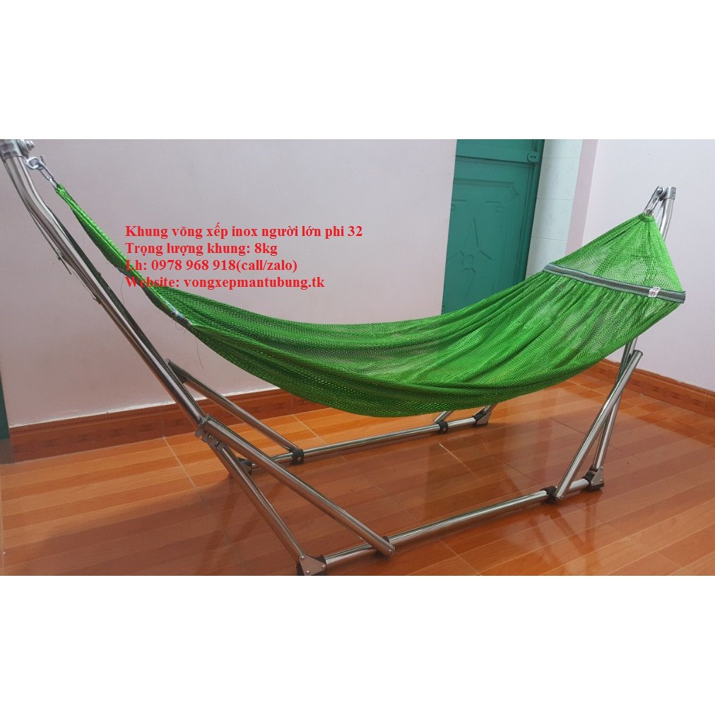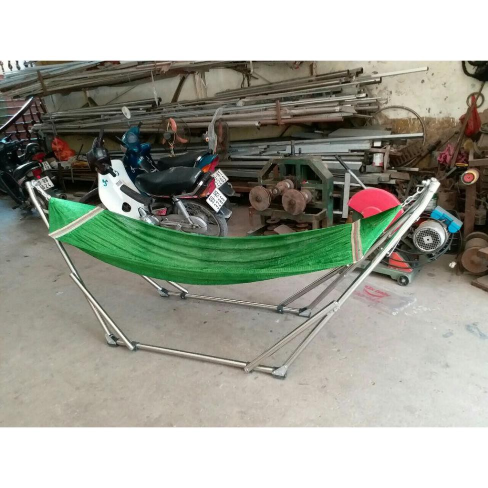 Võng Xếp Khung Inox Phi 32 size người lớn Kèm Lưới Võng Cỡ Đại