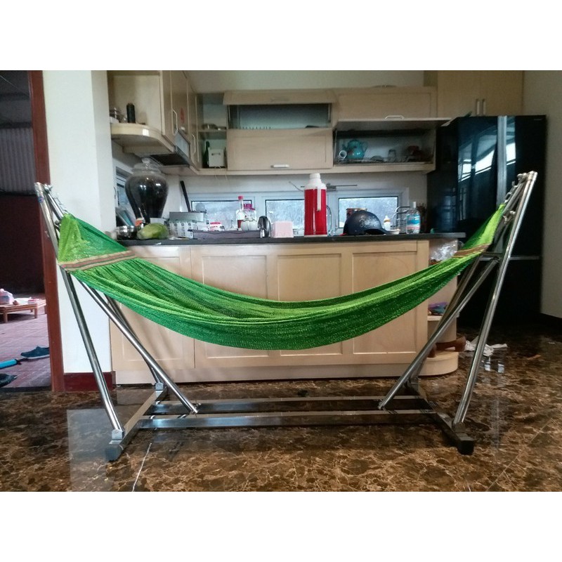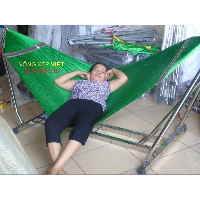 Võng xếp Khung Inox thang vuông chất lượng cao tặng kèm lưới 1,4kg