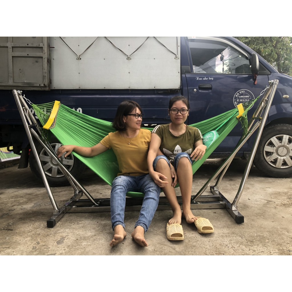 Võng xếp Khung Inox thang vuông chất lượng cao- tặng lưới+màn võng chống muỗi