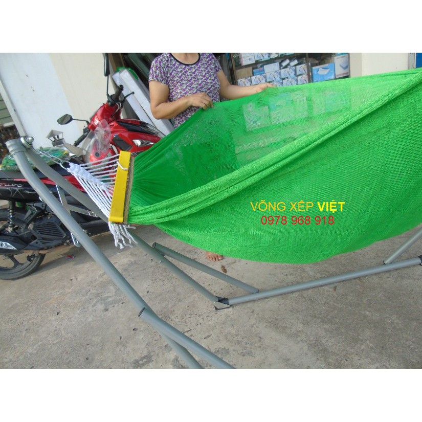Võng xếp có thể điều chỉnh mọi kích thước và độ căng của võng, tháo lắp dễ dàng trong vòng 20 giây rất cơ động, đầu võng siêu bền nhờ 2 bạc đạn lớn Nhật giúp võng đung đưa lâu và nhẹ nhàng. Khung võng tối ưu thích hợp cho cả người lớn và trẻ em giúp chúng ta có những giây phút thư giãn thoải mái. Võng xếp được tiêu thụ rộng trên toàn quốc đây là món quà rất thiết thực và có ý nghĩa lâu dài.