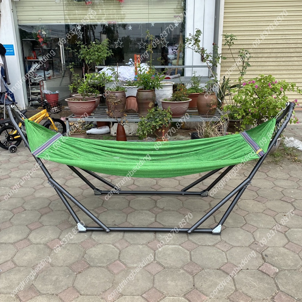 Võng xếp Khung Sơn Tĩnh Điện TRƯỜNG NGA Phi 32 Cao Cấp - Tặng kèm Lưới Võng ( Chịu trọng lực 150kg )