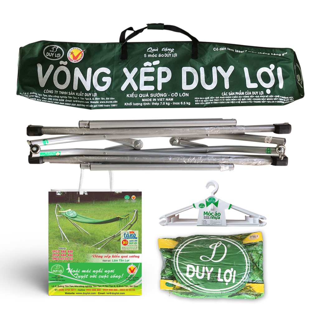 Bộ võng xếp khung thép Duy Lợi cỡ lớn (Qùa tặng 20 móc áo)