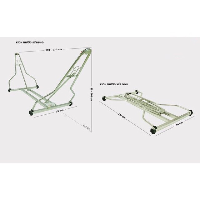 - Kích thước sử dụng: D x R x C = (210 đến 270) x 76 x (82 đến 103) cm