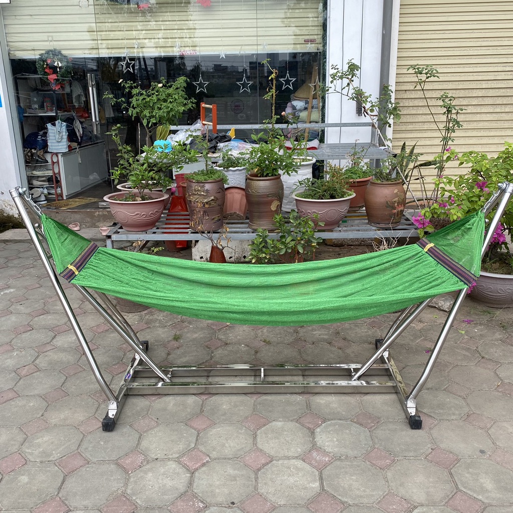 Võng Xếp Thuyền Khung Vuông Inox 304 Phi 40 Không Rỉ Sáng Bóng - ( Chịu trọng lực 250kg + Kèm ảnh và video thật )