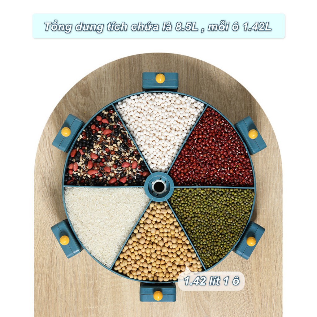 - Thiết kế 6 ô đựng ngũ cốc tiện lợi , với dung tích 1.42L mỗi ô