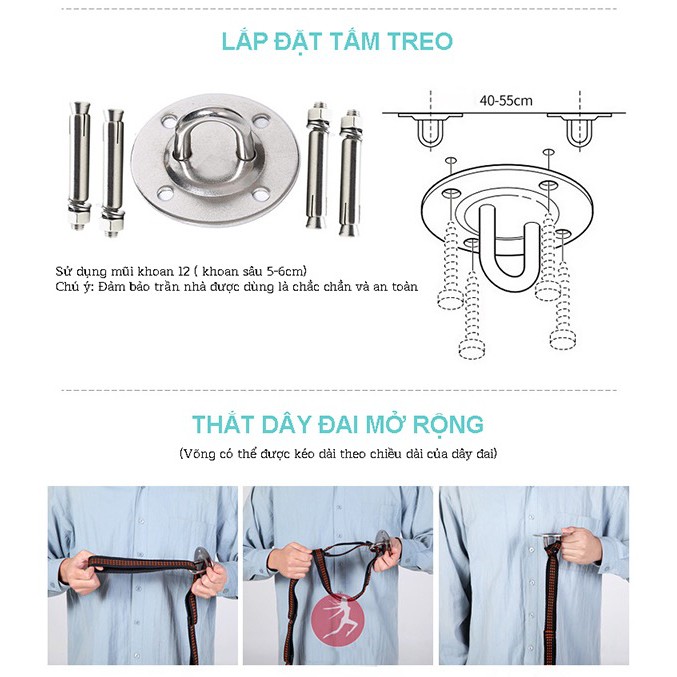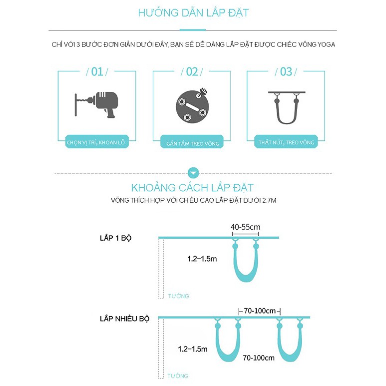 Thông số kỹ thuật của bộ võng yoga kèm phụ kiện như trên