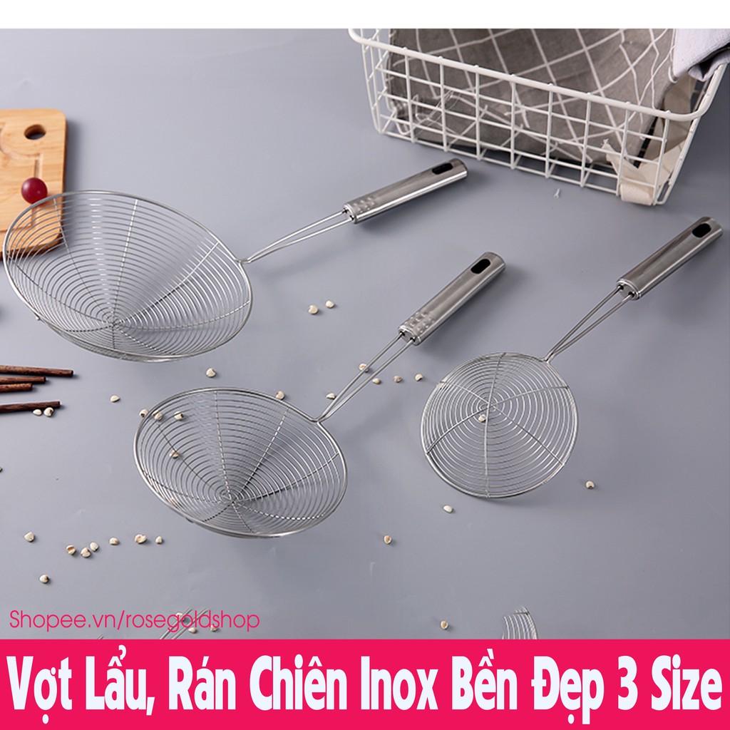 Nhà cửa & Đời sống > Dụng cụ nhà bếp > Cây vét bột & đồ gắp thức ăn || Vợt Lẩu, Rán Chiên, Chao Vòng Vớt Thức Ăn Bằng Inox Bền Đẹp 3 SizeCòn hàng
