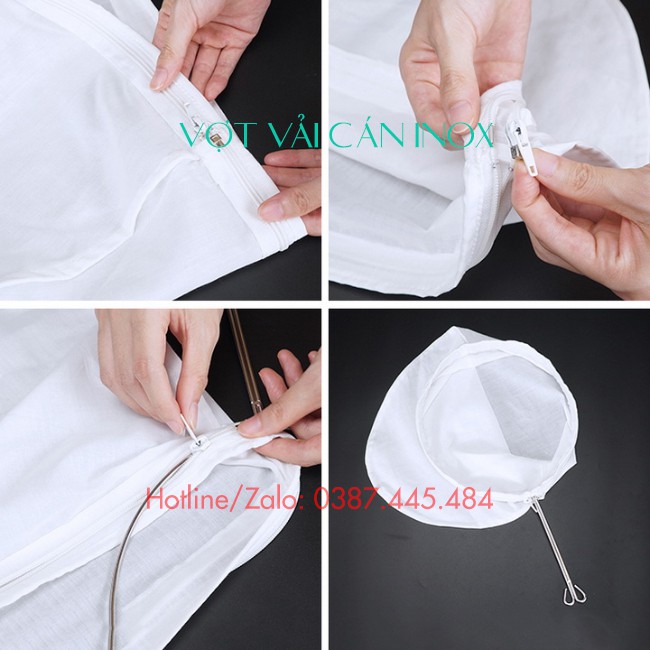 Chất liệu quai inox không rỉ, vợt lọc vải chất liệu đảm bảo vệ sinh ATTP