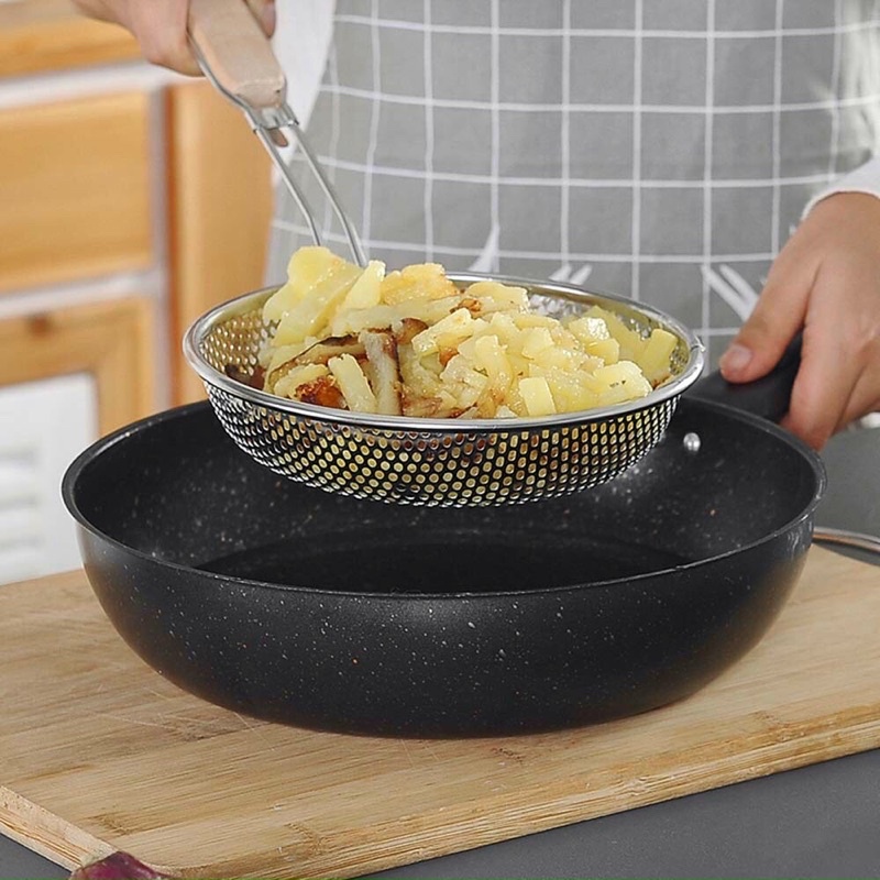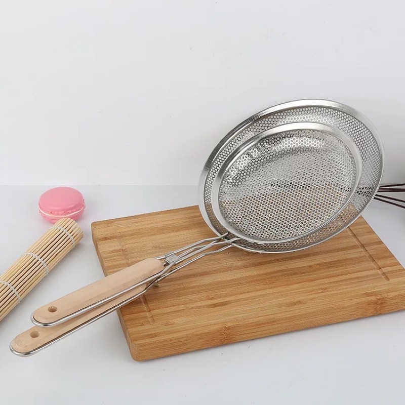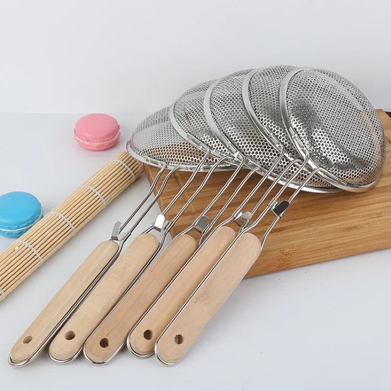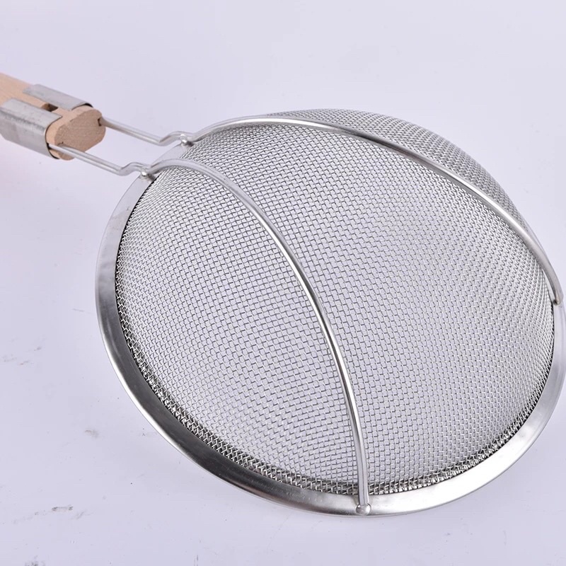 Vợt Lưới Inox Vớt Thức Ăn Cán Gỗ Cao Cấp 18cm