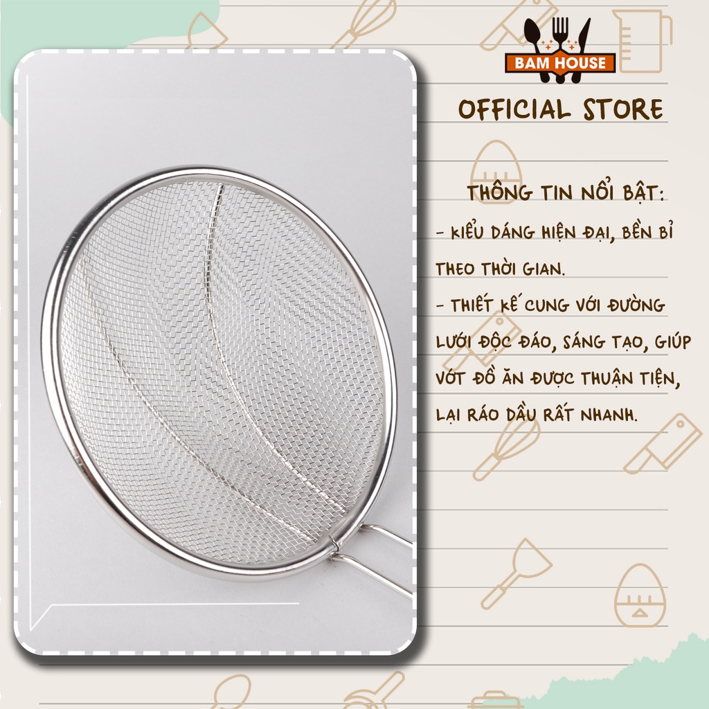 Vợt lưới vớt thức ăn inox Bam House cán gỗ đường kính 14cm cao cấp VCG01 - Gia dụng bếpTrong cuộc sống hiện đại ngày nay, không gian nhà bếp của mỗi gia đình đã thay đổi hơn xưa rất nhiều, đặt biệt là dụng cụ làm bếp, với rất nhiều mẫu mã đa dạng, phát minh tiện dụng đã giúp cho việc làm bếp trở nên dễ dàng hơn bao giờ hết