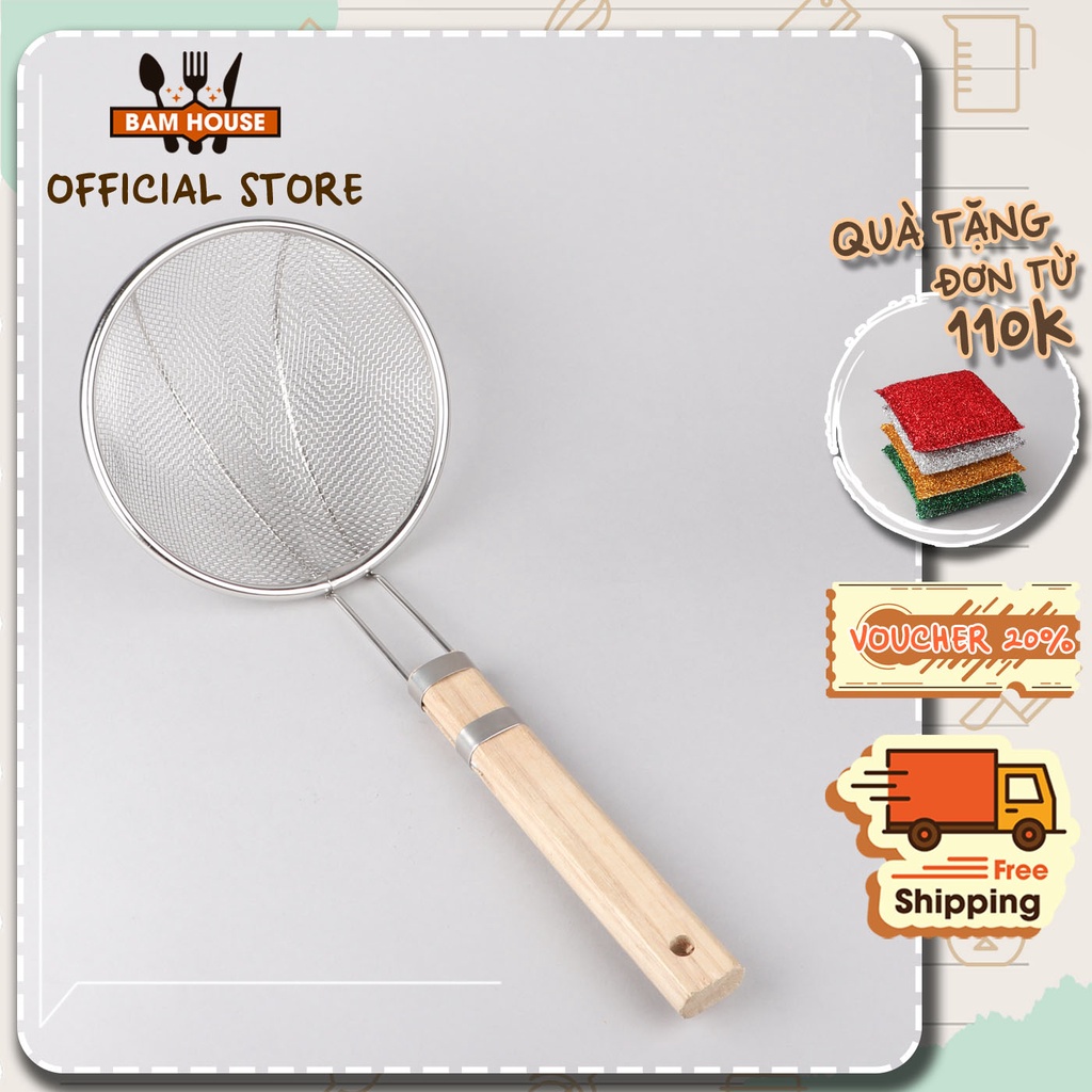 Vợt lưới vớt thức ăn inox Bam House cán gỗ đường kính 14cm cao cấp VCG01 - Gia dụng bếp