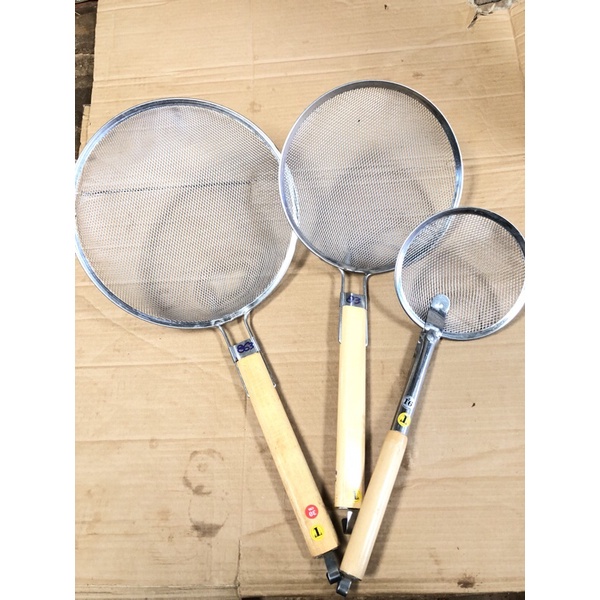 Vợt lưới cán gổ vớt đồ chiên ráo dầu cán có mócChất liệu: cán gổ tự nhiên, rổ lưới nhôm nhập, khung thép không ghỉ
