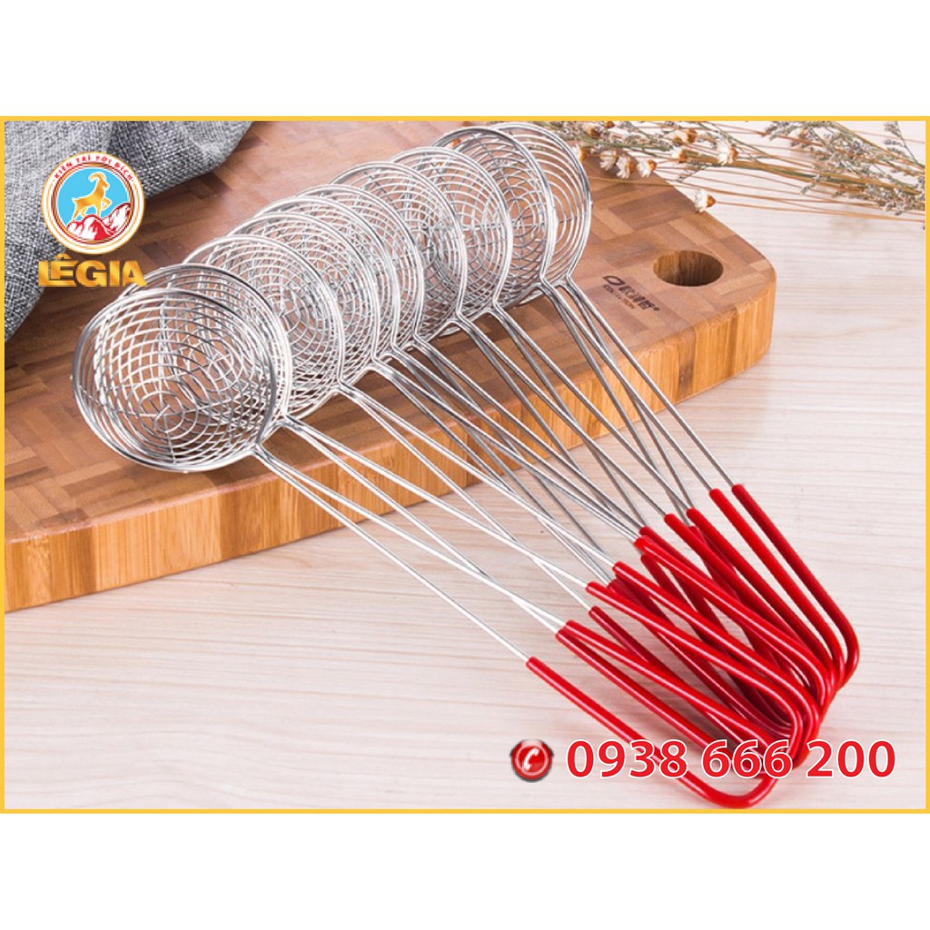Phần lưới vợt được làm từ chất liệu inox dày, không bị han gỉ, chịu được nhiệt độ cao và không gây độc hại cho người sử dụng. Lòng vợt được thiết kế rộng có dạng tròn được đan thưa vào nhau, có thể luồn dưới và lấy thực phẩm một cách nhanh gọn và không mất nhiều công sức. Cán dài có thiết kế tay cầm được bọc cao su chống trơn màu đỏ nên dễ dàng múc topping. Đồng thời, phần cán dài được khoan lỗ ở giữa tới lưới vợt, giúp bạn có thể treo móc dễ dàng và mang lại gọn gàng, ngăn nắp cho không gian căn bếp của bạn.