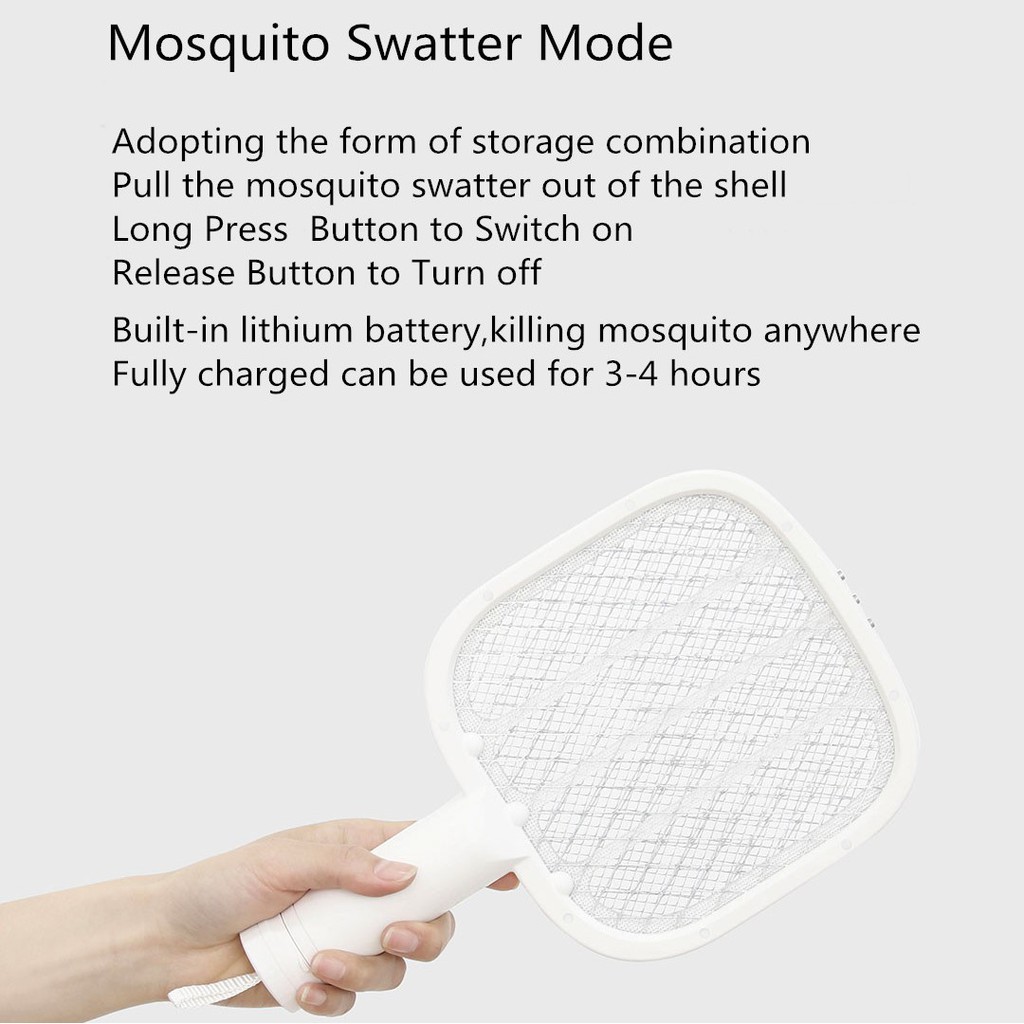 Ngoài công năng tiêu diệt muỗi thụ động, thiết bị còn được sử dụng làm vợt bắt muỗi linh hoạt. Nhấp nút trên tay cầm và sử dụng đơn giản như những loại vợt thông thường khác.