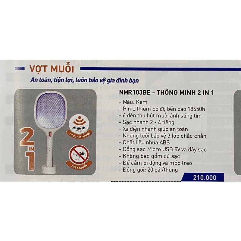 Thiết Bị Điện Gia Dụng > Khác || Vợt muỗi thông minh NMR103BE NanocoCòn hàng