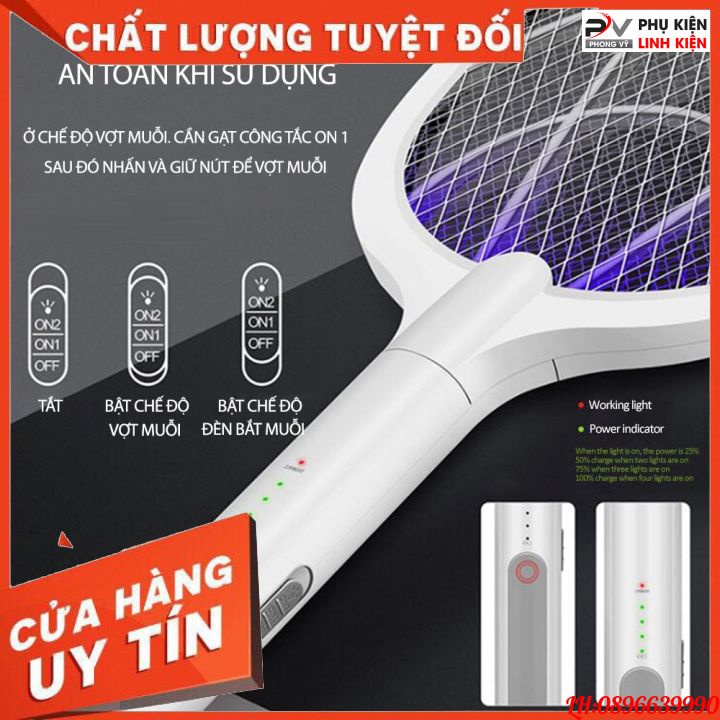 - Vợt muỗi kiêm đèn bắt muỗi 2 trong 1 tích hợp đèn LED ánh sáng tím thu hút muỗi giúp bẫy được nhiều muỗi khi sử dụng ở chế độ đèn bắt muỗi