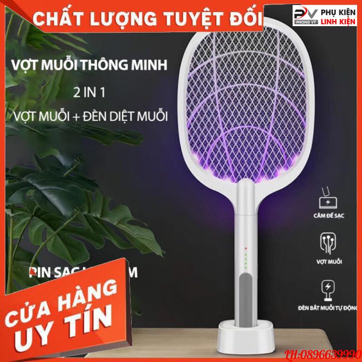 Vợt muỗi thông minh tự động DP-834 tích hợp đèn LED cao cấp thu hút muỗi hiệu quả (tặng dây sạc và đế sạc)