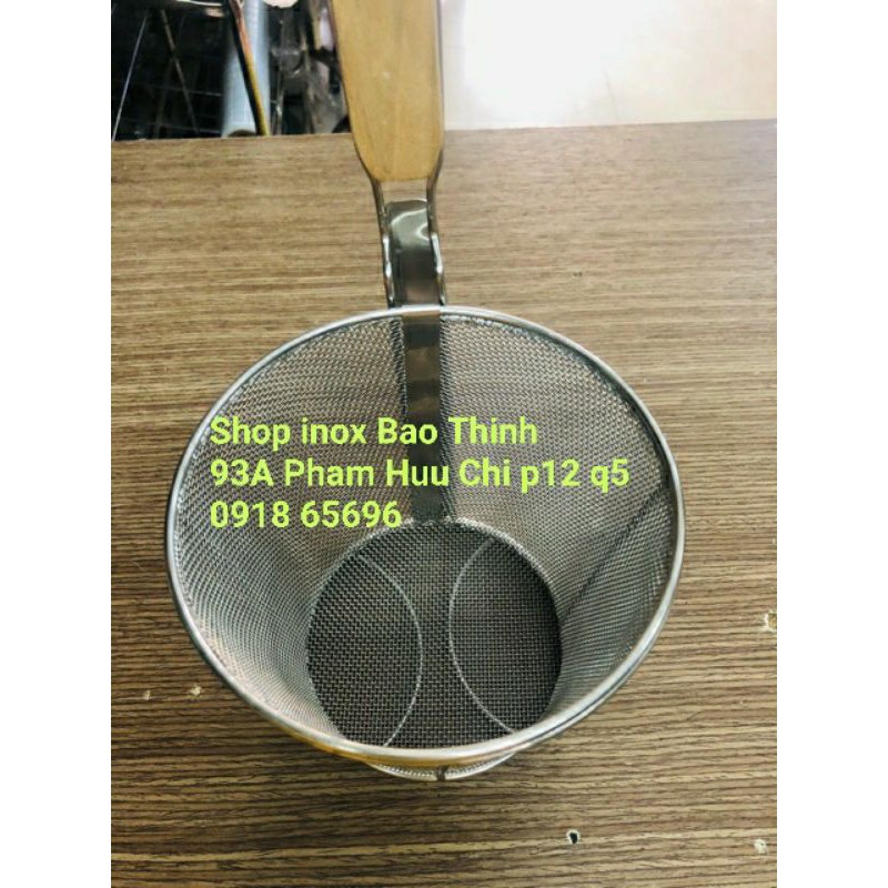 Chất liệu inox cao cấp, không gỉ- Cán gỗ dài cách nhiệt giúp bạn không bị nóng khi trụng hủ tiếu