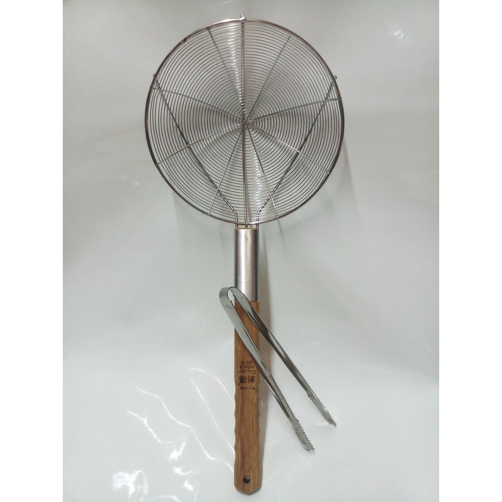 VỢT VÒNG INOX CÁN GỖ LỚN (28x65 CM) TẶNG KÈM MỘT GẮP INOX CAO CẤP.
