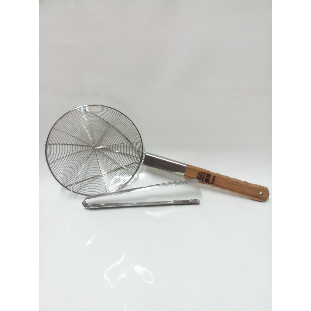 VỢT VÒNG INOX CÁN GỖ NHỎ (24x55,5 CM) TẶNG KÈM MỘT GẮP INOX CAO CẤP.