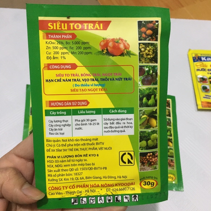 Nhà cửa & Đời sống > Làm vườn > Phân bón || Vua to trái, to quả 30gr -Giúp lớn trái, bóng đẹp quả, hạn chế nứt quả, nám quảCòn hàng