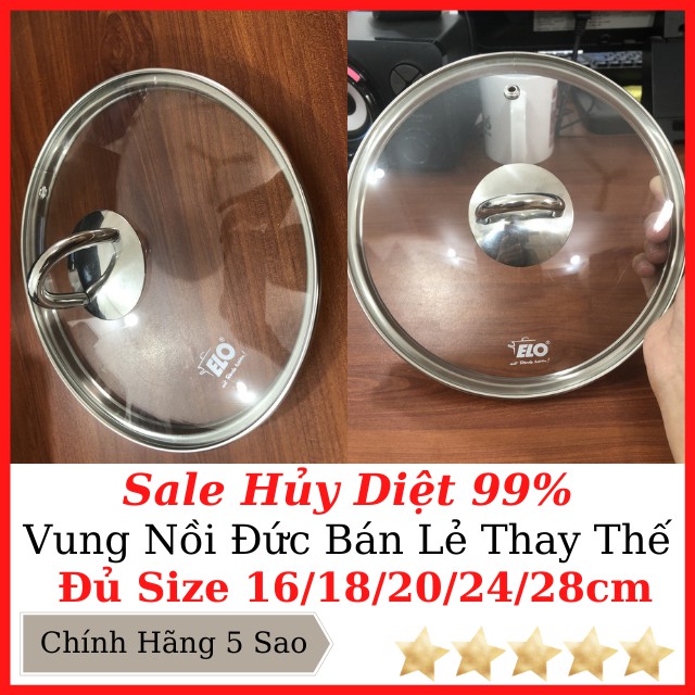 Vung nồi Elo Size 16/18/20/24/28cm, Vung Kính Bán Lẻ Thay Thế Cho Nắp Nồi Chảo Rơi Vỡ, Đủ Kích Cỡ 16-28 cm
