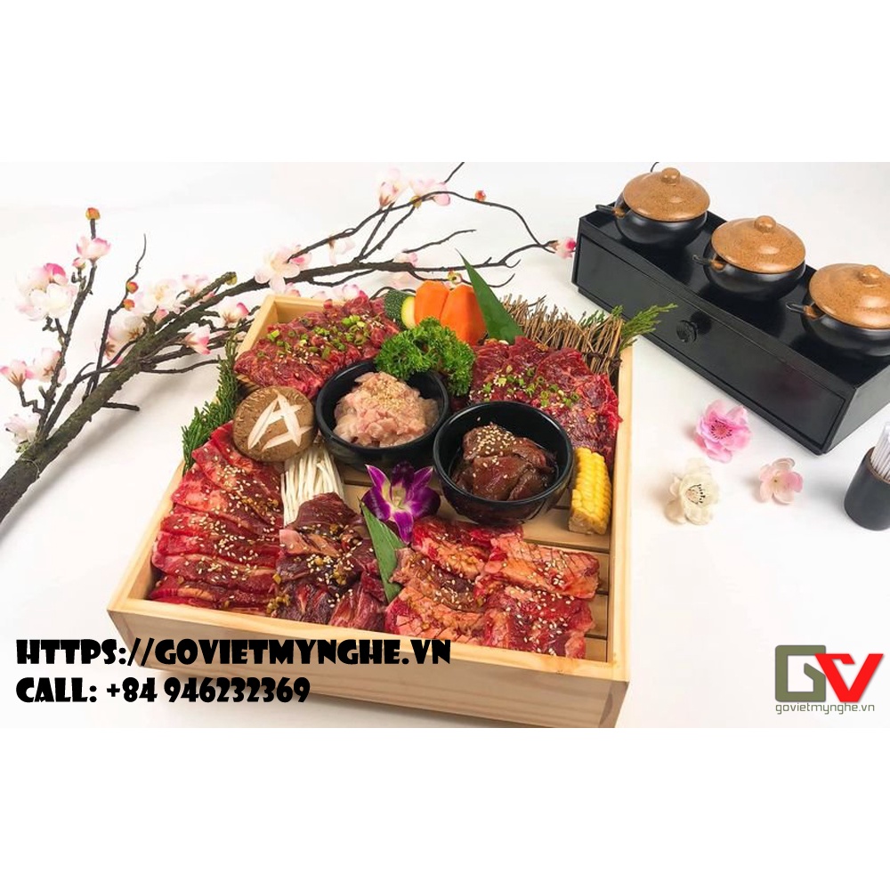 [Vuông 30x30cm] Khay gỗ trang trí món ăn - Khay gỗ trang trí sushi sashimi cho nhà hàng Nhật - Gỗ Thông- Chuẩn xuất khẩu