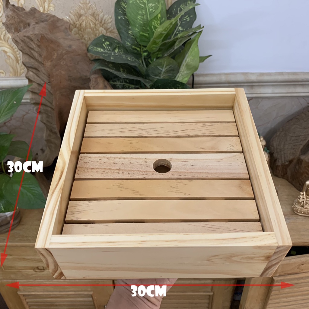 + Khay gỗ kích thước: 30cm x 30cm , Cao 7 (cm)