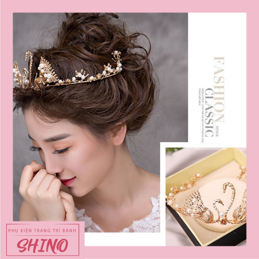Đồ chơi vương miện thiên nga trang trí bánh (16 x 9 cm)