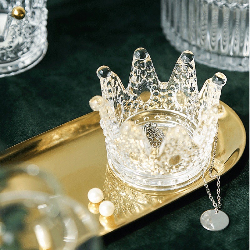 Vương miện thuỷ tinh đựng nến sang trọng lịch sự, dùng để đựng nến tealight hoặc trang sức, tuỳ vào ứng dụng cs của bạnKích thước : 7.5x 5x5.8cm