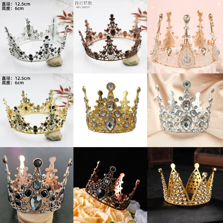 Vương miện mini trang trí bánh kem, vương miện trang trí- Dùng cắm trang trí lên bánh kem, bánh sinh nhật các loại, có vị trí buộc dây đội đầu ...