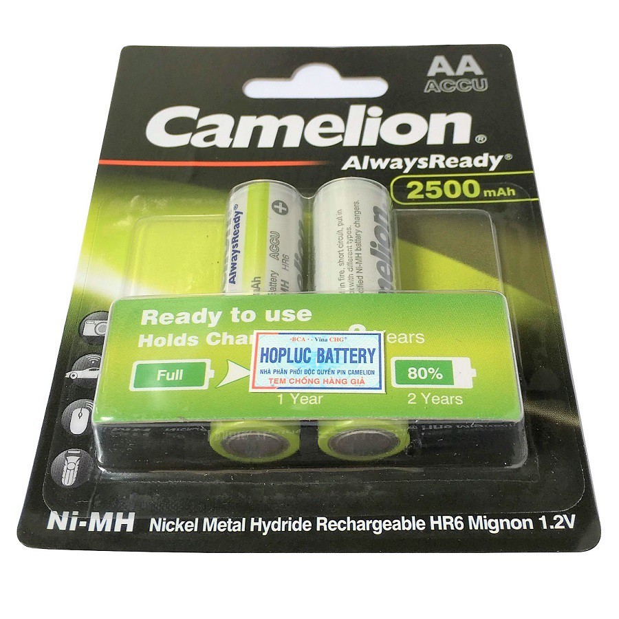 Cameras & Flycam > Phụ kiện máy ảnh > Đế pin || Vỷ 2 Viên Pin Sạc Camelion AA 2500mAh Always ReadyCòn hàng