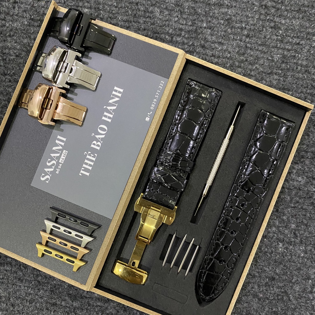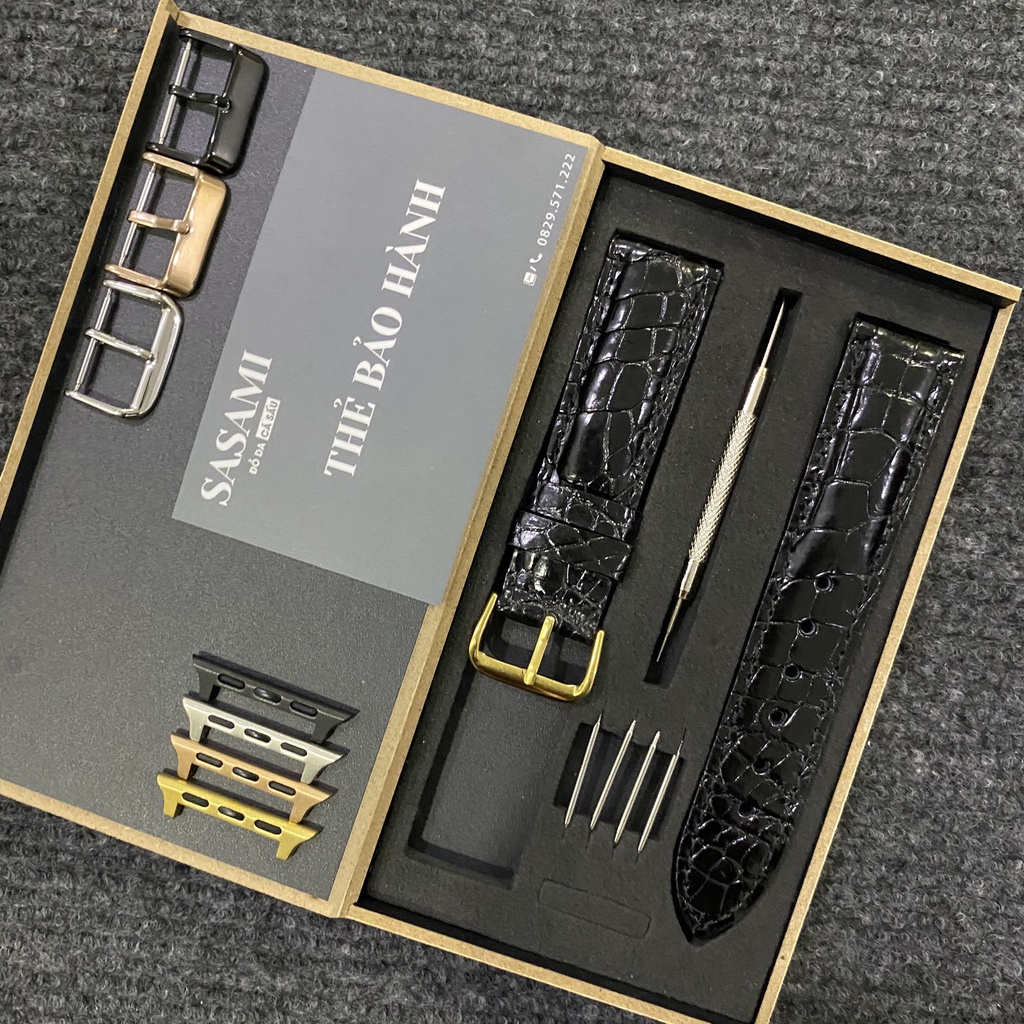 W1.Dây đồng hồ Apple Watch DA CÁ SẤU,SP GỒM: 1 DÂY+1 KHÓA+2 CHỐT APPLEWATCH,TẶNG HỘP VÀ 1 CÂY THAY DÂY