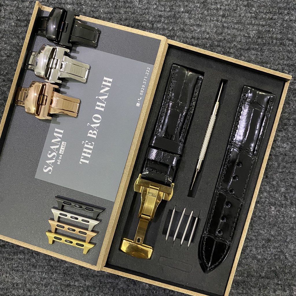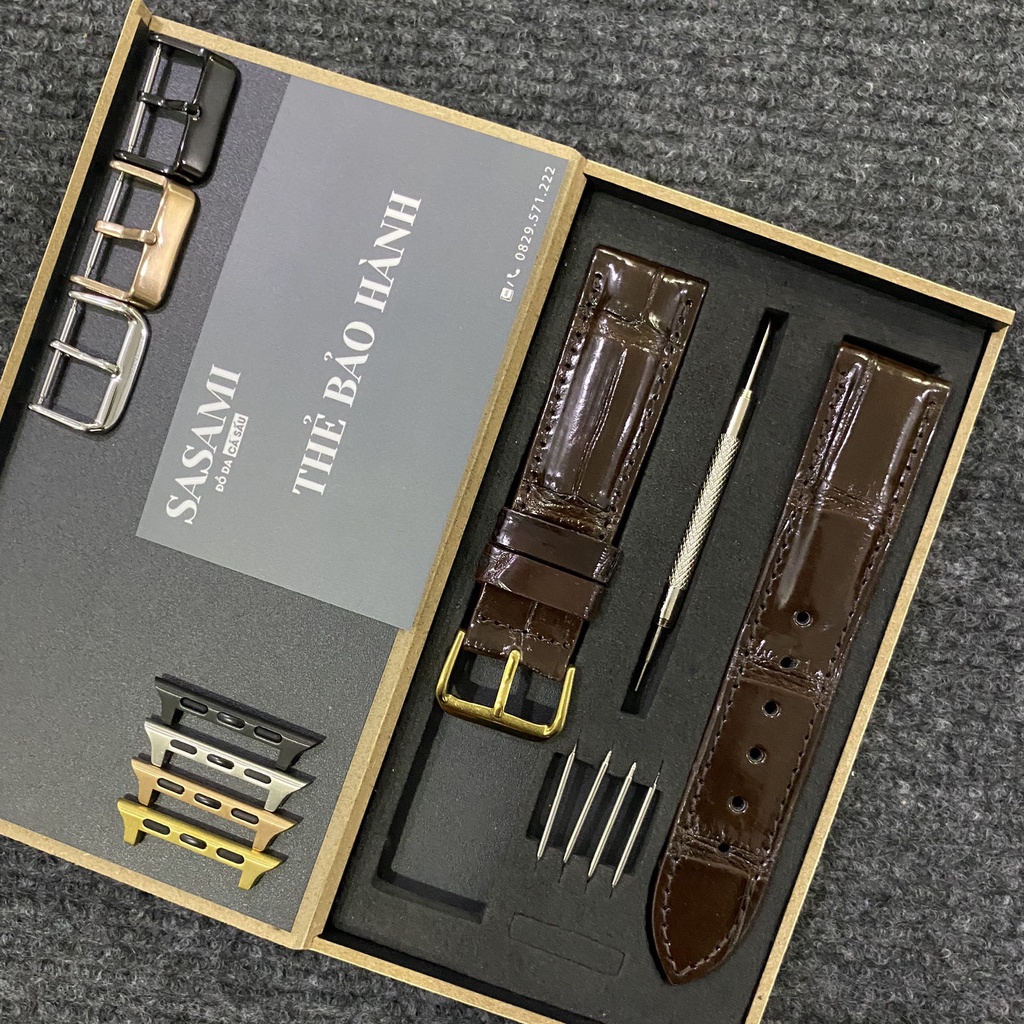 W2. Dây đồng hồ Apple Watch DA CÁ SẤU Vân Trúc,SP GỒM: 1 DÂY+1 KHÓA+2 CHỐT APPLEWATCH,TẶNG HỘP VÀ 1 CÂY THAY DÂY